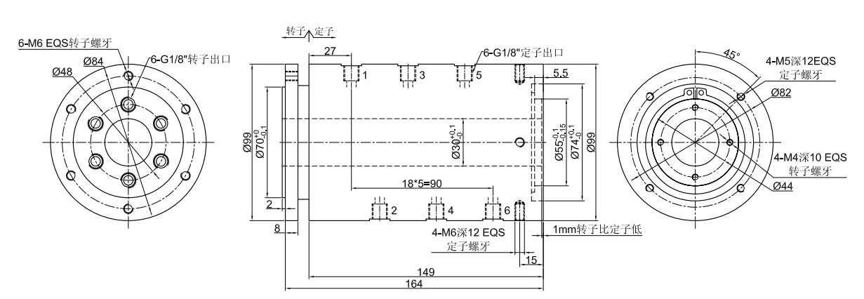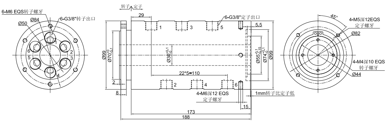 GJ6030系列 (中空30mm, 6進6出, 中空氣液旋轉(zhuǎn)接頭,氣滑環(huán),液壓滑環(huán))