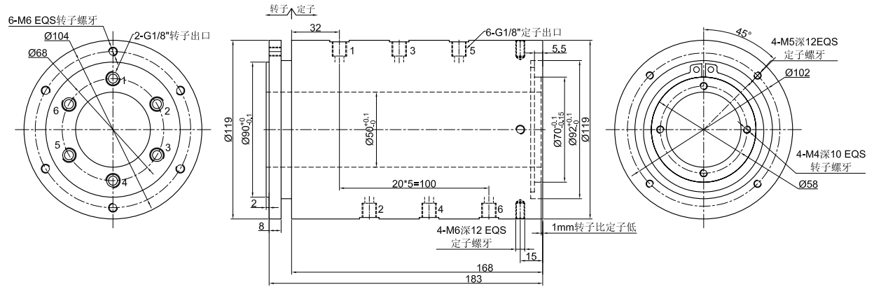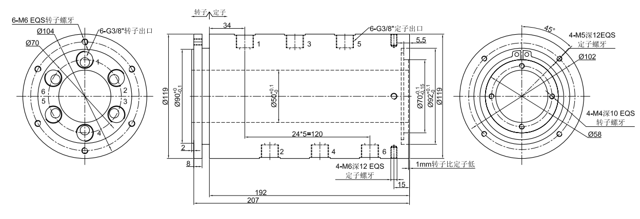 GJ6050系列 (中空50mm, 6進(jìn)6出, 中空氣液旋轉(zhuǎn)接頭,氣滑環(huán),液壓滑環(huán))