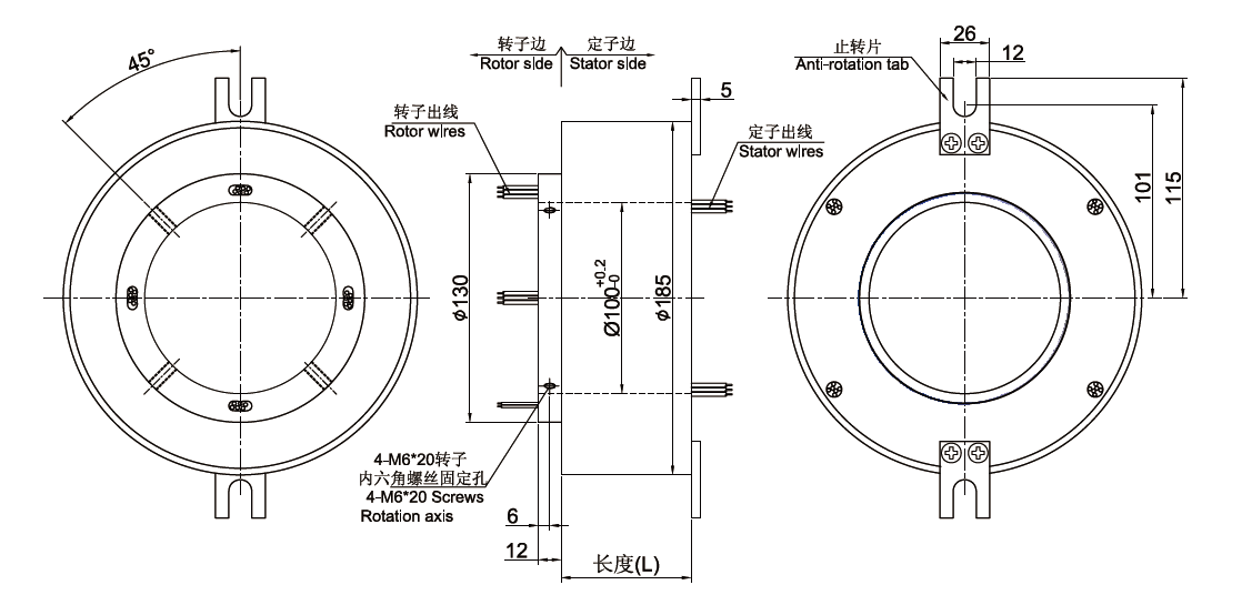 GT100185系列整體式精密導(dǎo)電滑環(huán),主要應(yīng)用于360度連續(xù)旋轉(zhuǎn)且需要保證電源,信號(hào)不能中斷的場(chǎng)合:多用于加熱滾筒、自動(dòng)焊接設(shè)備、金屬表面加工設(shè)備、擠出流延復(fù)合設(shè)備、靜態(tài)扭矩傳感器、壓力變送器、工業(yè)機(jī)器 人、電線(網(wǎng)線)電纜生產(chǎn)設(shè)備、電子(紡織品)質(zhì)量檢測(cè)儀器、機(jī)器人生產(chǎn)線、汽車涂裝和裝配線的車間設(shè)備改裝、加速度傳感器、研磨分散機(jī)、旋轉(zhuǎn)餐桌等任意需要360°旋轉(zhuǎn)導(dǎo)電或傳輸各種控制信號(hào)的裝置。