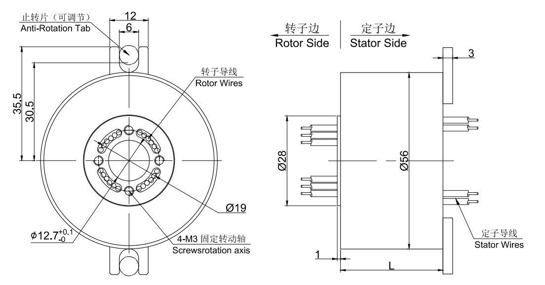 扁平盤(pán)式滑環(huán),主要應(yīng)用對(duì)安裝高度有嚴(yán)格限制的場(chǎng)合,要求360度連續(xù)旋轉(zhuǎn)且需要保證電源,數(shù)字信號(hào),模擬信號(hào)不能中斷:如旋轉(zhuǎn)門(mén),醫(yī)用CT,安檢設(shè)備,以及其他工業(yè)自動(dòng)化設(shè)備,智能制造設(shè)備, 焊接機(jī)器人等;
