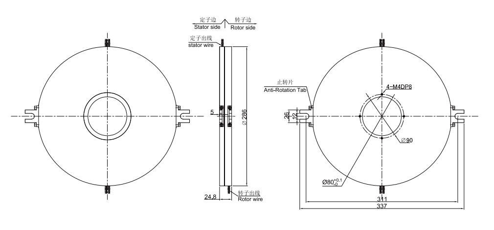 扁平盤式滑環(huán),主要應用對安裝高度有嚴格限制的場合,要求360度連續(xù)旋轉且需要保證電源,數字信號,模擬信號不能中斷:如旋轉門,醫(yī)用CT,安檢設備,以及其他工業(yè)自動化設備,智能制造設備, 焊接機器人等;