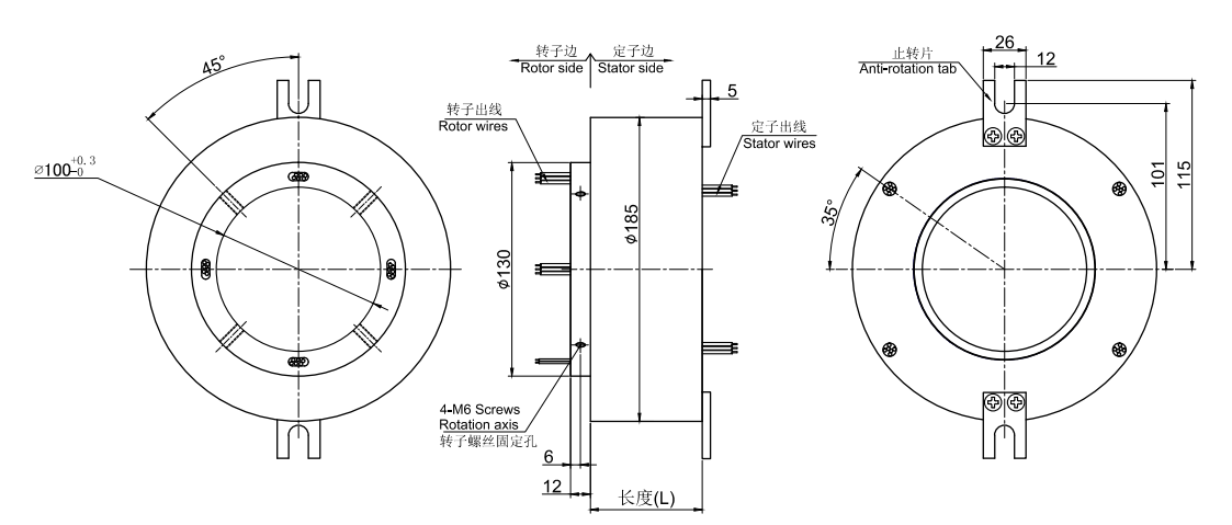 MT100185系列整體式精密導(dǎo)電滑環(huán),主要應(yīng)用于360度連續(xù)旋轉(zhuǎn)且需要保證電源,信號(hào)不能中斷的場(chǎng)合:多用于加熱滾筒、自動(dòng)焊接設(shè)備、金屬表面加工設(shè)備、擠出流延復(fù)合設(shè)備、靜態(tài)扭矩傳感器、壓力變送器、工業(yè)機(jī)器 人、電線(網(wǎng)線)電纜生產(chǎn)設(shè)備、電子(紡織品)質(zhì)量檢測(cè)儀器、機(jī)器人生產(chǎn)線、汽車涂裝和裝配線的車間設(shè)備改裝、加速度傳感器、研磨分散機(jī)、旋轉(zhuǎn)餐桌等任意需要360°旋轉(zhuǎn)導(dǎo)電或傳輸各種控制信號(hào)的裝置。