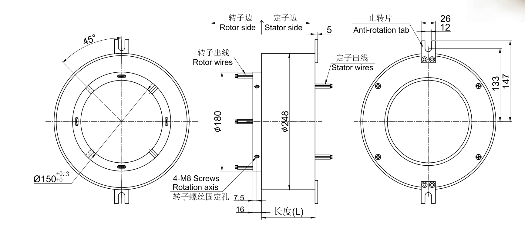 MT150248系列整體式精密導(dǎo)電滑環(huán),主要應(yīng)用于360度連續(xù)旋轉(zhuǎn)且需要保證電源,信號(hào)不能中斷的場(chǎng)合:多用于鋰電池生產(chǎn)設(shè)備、試驗(yàn)設(shè)備、橡膠軟管生產(chǎn)設(shè)備、畜牧機(jī)械、自動(dòng)包裝機(jī)、自動(dòng)裝盒機(jī)、自動(dòng)灌封機(jī)、自動(dòng)后踵 按摩機(jī)、注塑機(jī)滑環(huán)、攪拌機(jī)滑環(huán)等任意需要360°旋轉(zhuǎn)導(dǎo)電或傳輸各種控制信號(hào)的裝置。