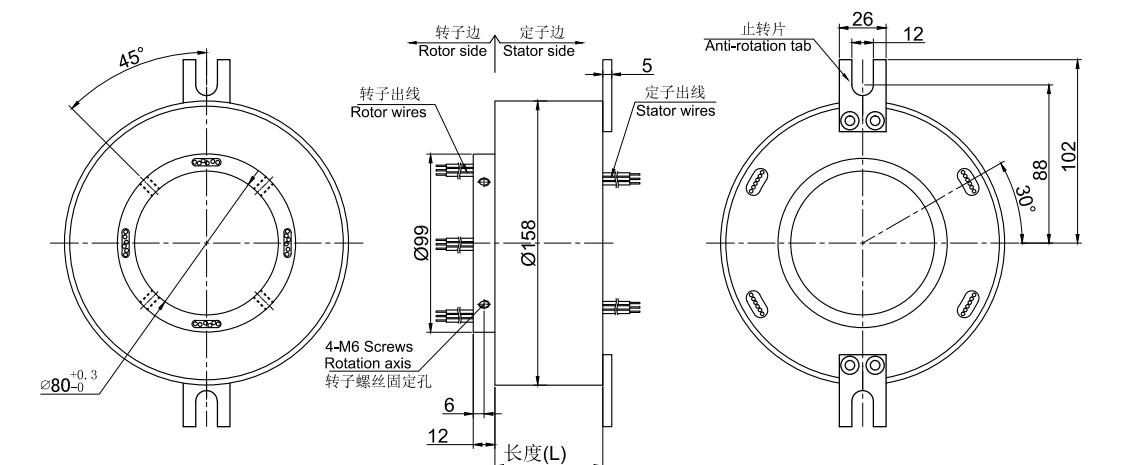 MT80158系列整體式精密導(dǎo)電滑環(huán),主要應(yīng)用于360度連續(xù)旋轉(zhuǎn)且需要保證電源,信號(hào)不能中斷的場(chǎng)合:多用于醫(yī)療器械、紡織業(yè)設(shè)備、礦山工程機(jī)械、塑膠/硅膠制品生產(chǎn)設(shè)備、轉(zhuǎn)馬游樂(lè)設(shè)備、自動(dòng)化生產(chǎn)設(shè)備、珍珠棉(E P)聚乙烯發(fā)泡塑膠機(jī)械設(shè)備、工業(yè)機(jī)器人、教育仿真設(shè)備、工程檢測(cè)儀器、金屬表面精整加工設(shè)備、自動(dòng)拋光設(shè)備、機(jī)械手、造紙生產(chǎn)線、印刷機(jī)械設(shè)備、干燥機(jī)設(shè)備、熱熔膠涂布機(jī)、連續(xù)輸送機(jī)械設(shè)備、傳感器、電纜生產(chǎn)與 檢測(cè)設(shè)備等任意需要360°旋轉(zhuǎn)導(dǎo)電或傳輸各種控制信號(hào)的裝置。