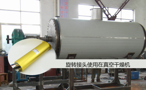 流通介質(zhì)進、出同一個旋轉(zhuǎn)接頭,用法蘭與滾筒連接實現(xiàn)介質(zhì)的進出流通。