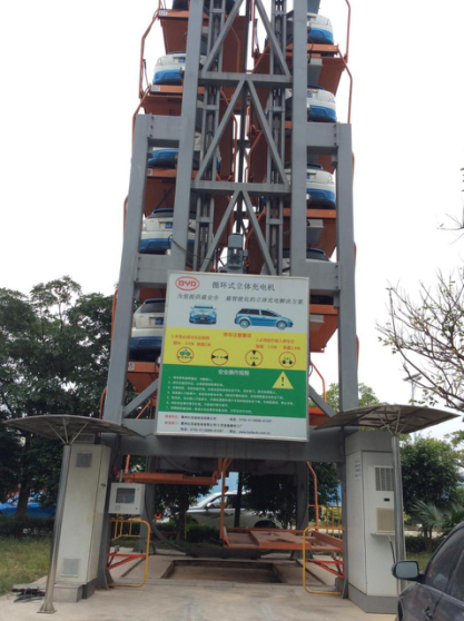 圖為BYD公司正在建設(shè)的立體式垂直循環(huán)停車充電站