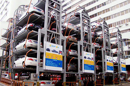 圖為立體式垂直循環(huán)停車充電站的項(xiàng)目施工現(xiàn)場(chǎng)